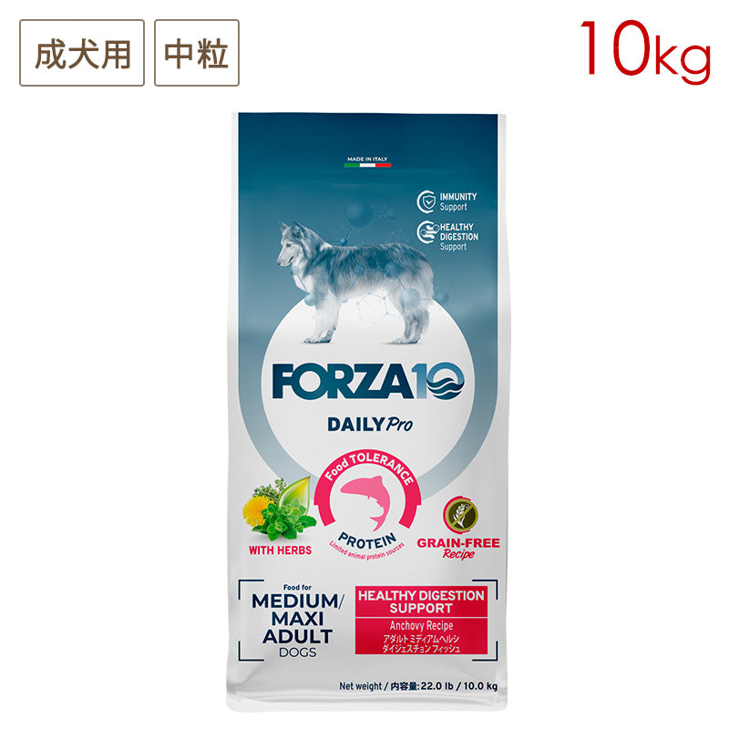 FORZA10 デイリープロ アダルト ミディアム ヘルシーダイジェスチョン フィッシュ 10kg (中粒) 成犬用 (お取り寄せ/5営業日以内に発送)
