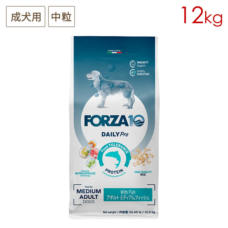FORZA10 デイリープロ アダルト ミディアム フィッシュ 12kg (中粒) 成犬用 (お取り寄せ/5営業日以内に発送)