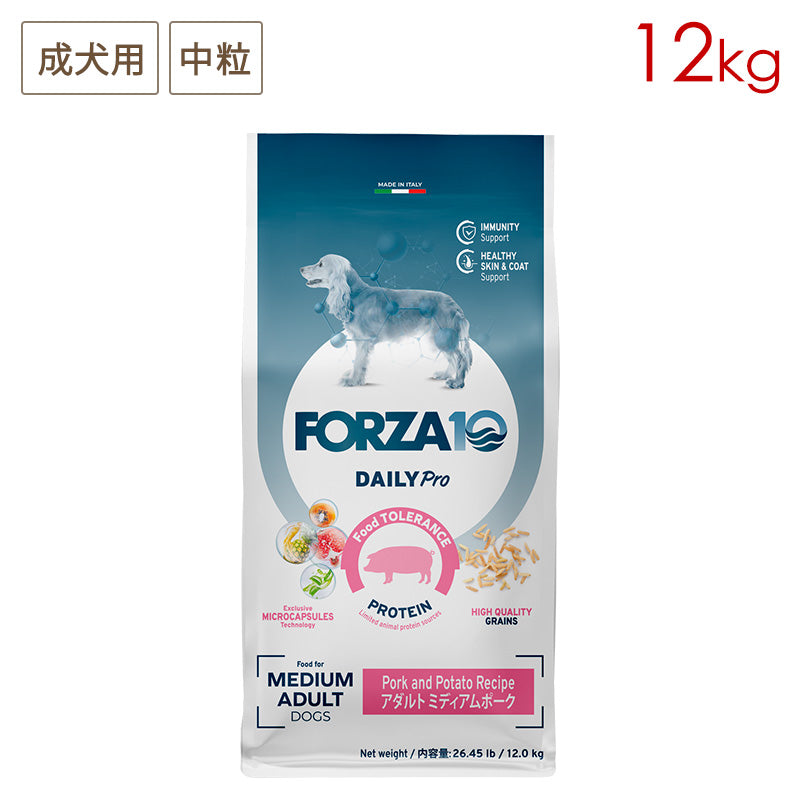 FORZA10 デイリープロ アダルト ミディアム ポーク 12kg (中粒) 成犬用 (お取り寄せ/5営業日以内に発送)