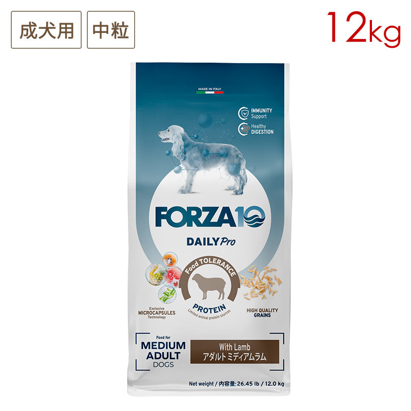 FORZA10 デイリープロ アダルト ミディアム ラム 12kg (中粒) 成犬用 (お取り寄せ/5営業日以内に発送)