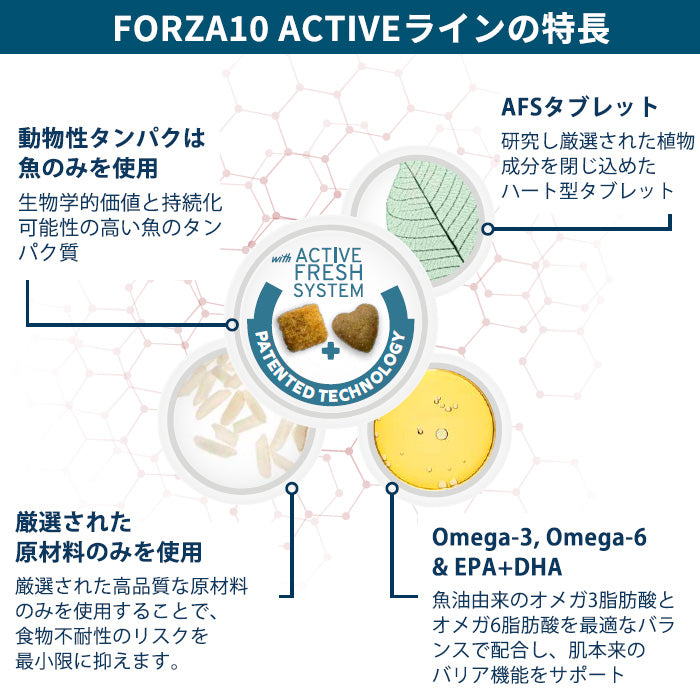 Forza10は天然原材料から得られる栄養の価値を知っています。 その為、植物性物質の栄養特性を保つための革新的な技術で特許を取得しています。