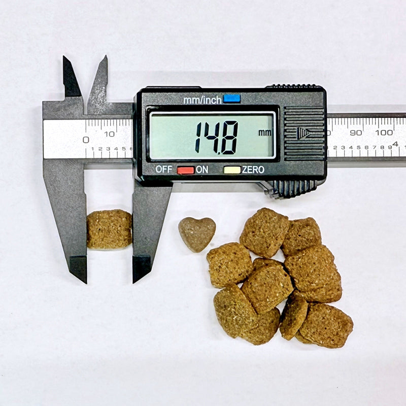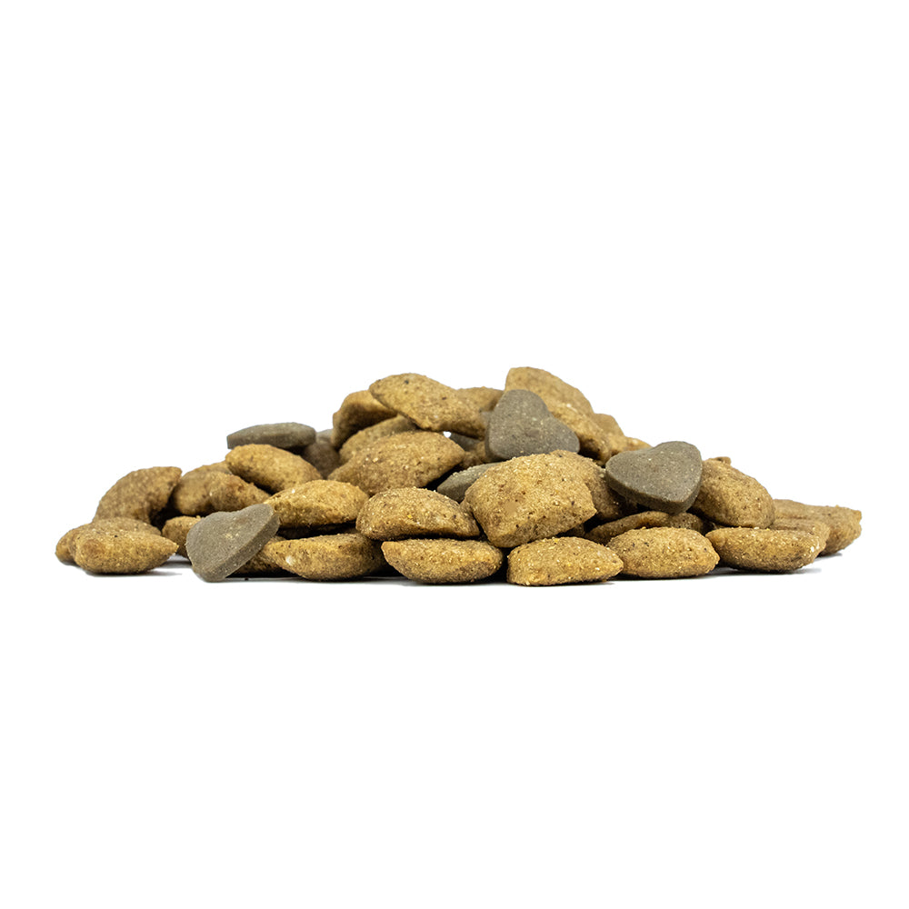 厳選された原材料を使用したフードに、植物成分が含まれたハート型タブレットが商品重量の約7%混ぜられています。