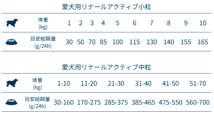 年齢、体重、犬種、活動レベルにより必要量が異なる場合があります。