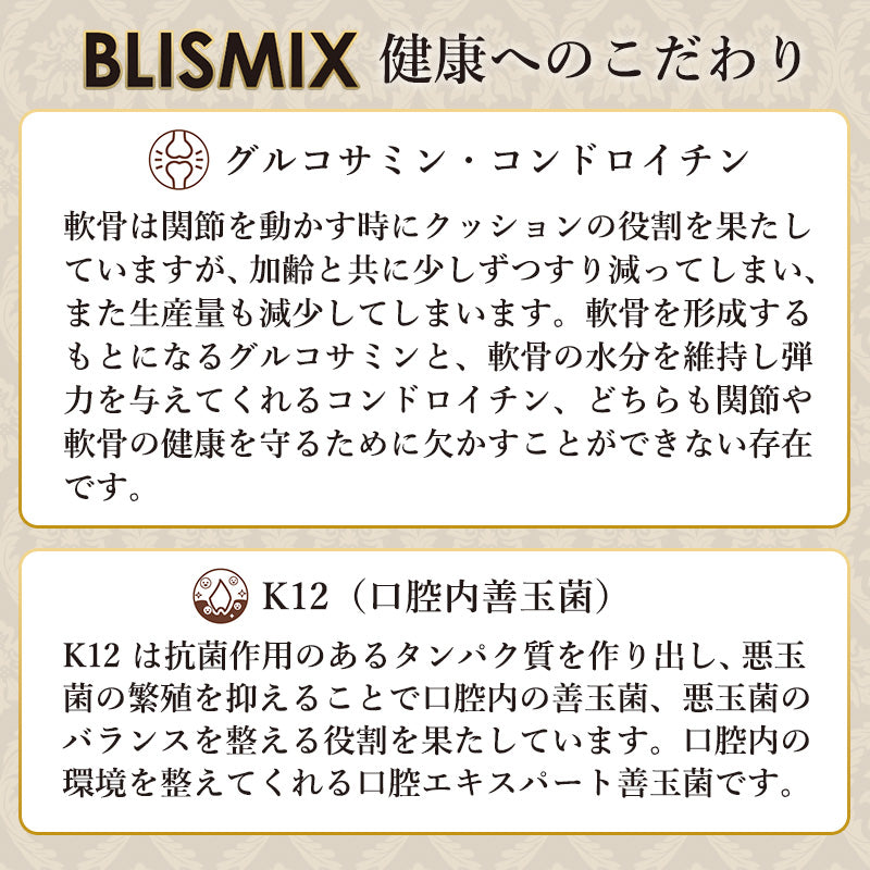 ブリスミックスは、アレルギーの原因になりやすい肉副産物・人工保存料・着色料は使用していません。また犬が消化を苦手とするでんぷん質の多い、小麦・大豆・とうもろこしも不使用。愛犬に安心して与えて頂ける素材を人間の食品基準で厳選しています。