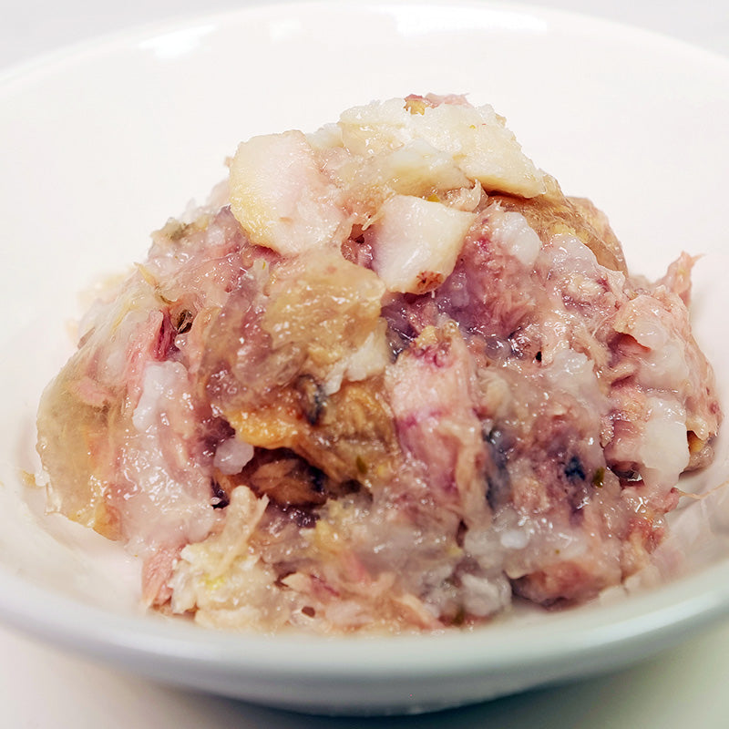 マグロと鯛にリンゴを加えることでミネラル、食物繊維をバランスよく配合、嗜好性と水分補給に配慮したジュレ仕立てのレシピです。