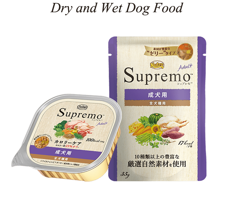 シュプレモ™のドライとウエットを組み合わせることで、与える量をボリュームアップしながらカロリーを抑えることができます。