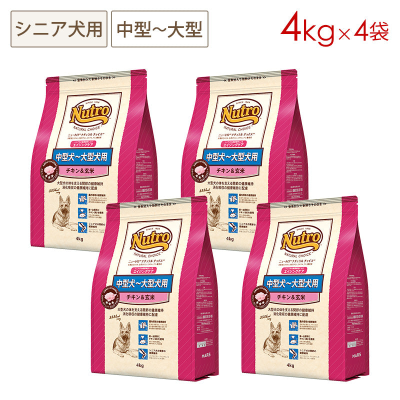 ニュートロ ナチュラルチョイス 中型犬~大型犬用 エイジングケア チキン&玄米 4kgX4 ND332