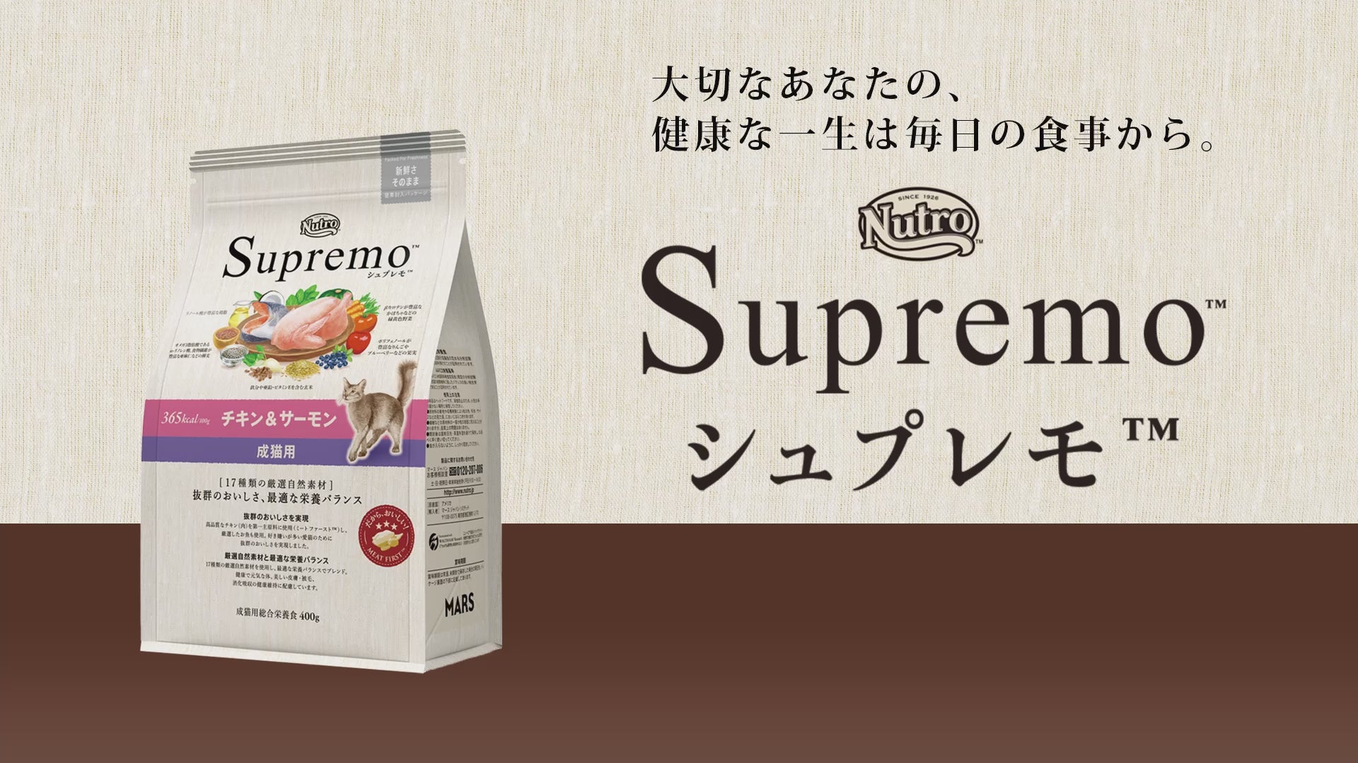 ニュートロ™ シュプレモ™ は、17種類の自然素材を厳選し、愛猫の食事を味わう楽しみと栄養バランスを実現したナチュラル*・フードです。
