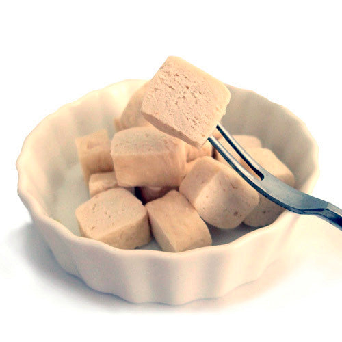 小麦粉、鶏ささみ、鶏肉、でん粉、ヨーグルトパウダー、グリセリン、膨張剤、プロピレングリコール、ソルビトール、保存料(ソルビン酸K)、酸化防止剤(エリソルビン酸Na)、着色料(酸化チタン)、香料
