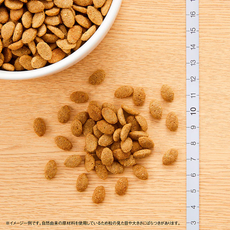 健康で元気な体、美しい皮膚・被毛の健康維持に配慮し、栄養素を豊富に含む高品質な自然素材を厳選し、最適な栄養バランスでブレンドしています。また、顎・口が小さいなどの超小型犬〜小型犬の特徴に配慮しています。*シュプレモ 小型犬用 成犬用製品よりカロリー7%オフ、脂質33%オフ