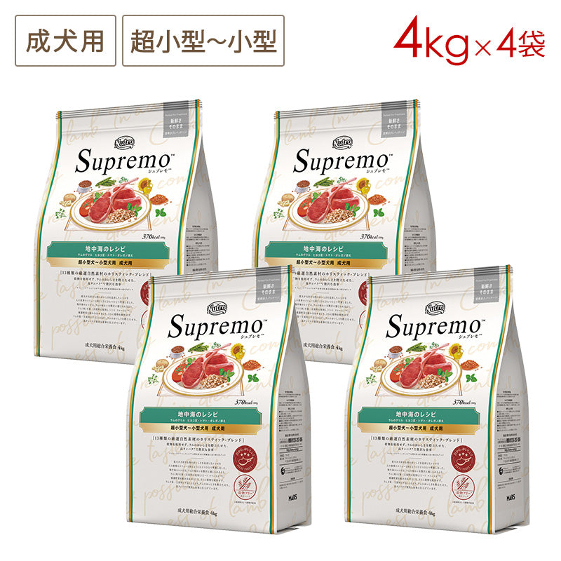 ニュートロ シュプレモ 超小型犬~小型犬用 成犬用 地中海のレシピ ラム 4kgX4 NS212